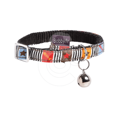 Un joli galon coloré, très doux ! Avec boucle et élastique de sécurité, et grelot.