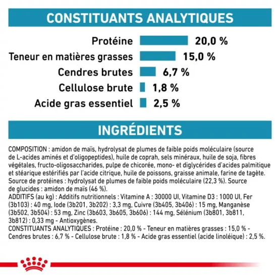 Cet aliment est destiné à la prise en charge nutritionnelle d’une maladie. Pour la santé de votre chien, il est recommandé de consulter votre vétérinaire et de respecter scrupuleusement ses recommandations nutritionnelles.