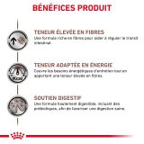 Royal Canin Fibre Response contient une association spécifique de fibres, particulièrement supplémentée en fibres insolubles qui permet de réguler la motricité intestinale.