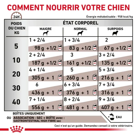 Cet aliment est destiné à la prise en charge nutritionnelle d’une maladie. Pour la santé de votre chien, il est recommandé de consulter votre vétérinaire et de respecter scrupuleusement ses recommandations nutritionnelles.