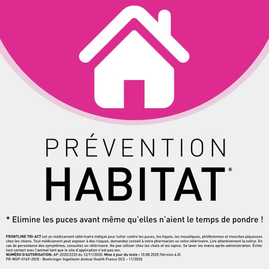 FRONTLINE TRI-ACT permet de lutter contre les parasites du chien. Il est efficace contre les puces, les insectes volants et les tiques.