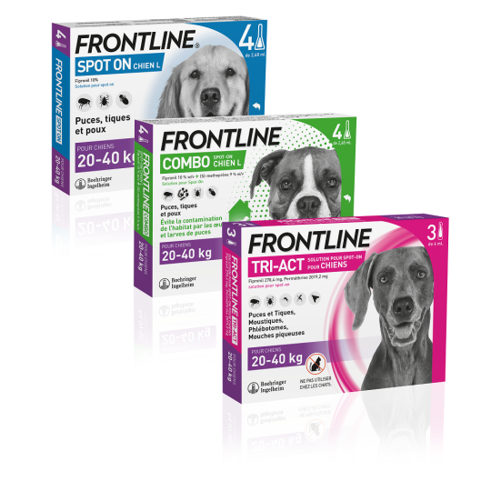 FRONTLINE TRI-ACT permet de lutter contre les parasites du chien. Il est efficace contre les puces, les insectes volants et les tiques.