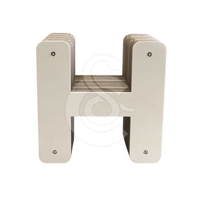 • L’assemblage du mobilier est assuré par de la visserie éliminant les colles entre les différentes plaques de carton et le bois, ce qui permet de changer le carton quand celui-ci est usé pour avoir toujours du mobilier comme neuf. Il est également possible de transformer votre lettre simple au format XL pour en faire un objet plus volumineux, une assise d’appoint… (recharge sur commande).