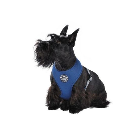 - Harnais en nylon, forme T-shirt bien enveloppante et très confortable pour le chien.