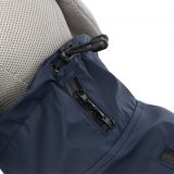 – avec deux fermetures éclair étanches pour attacher la laisse ou le harnais