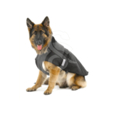 Imperméable noir, étanche à la pluie et au vent, avec col de protection.