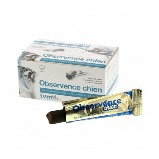 Observence en barre fractionnable pour chien est un aliment complémentaire qui permet d’enrober et de dissimuler comprimés ou gélules pour en faciliter la prise.