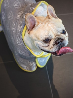Un peignoir en microfibre ultra absorbante, douce et épaisse pour envelopper et sécher rapidement votre chien à la sortie du bain, tout en évitant qu’il ne prenne froid ! Avec capuche et ceinture à nouer pour bien maintenir le peignoir.