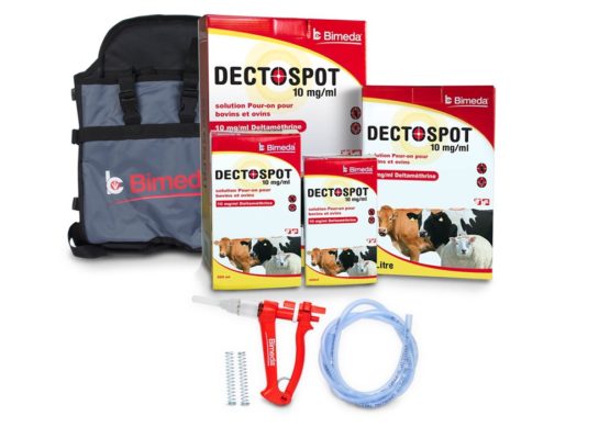 Pistolet pour l’application de solution pour-on à base de Deltaméthrine de plus de 1 litre.