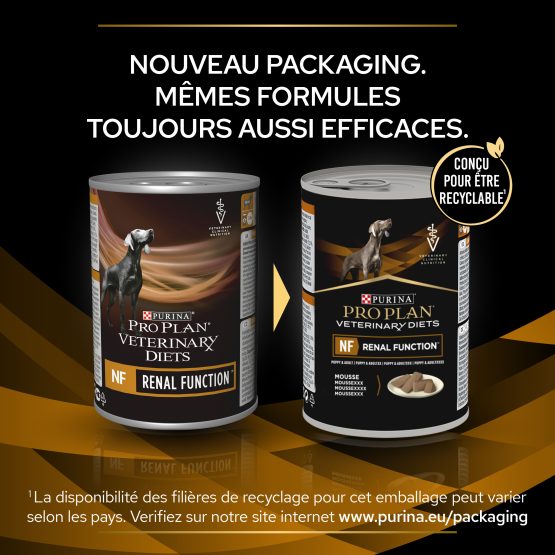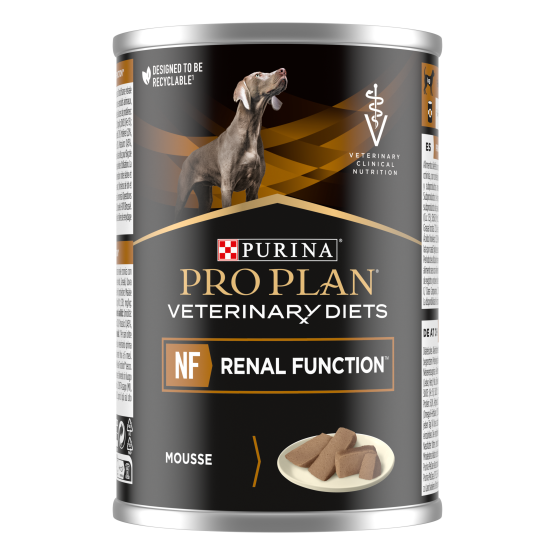 Canine NF Renal Fonction est un aliment vétérinaire complet pour la prise en charge de l’insuffisance rénale chez le chien.