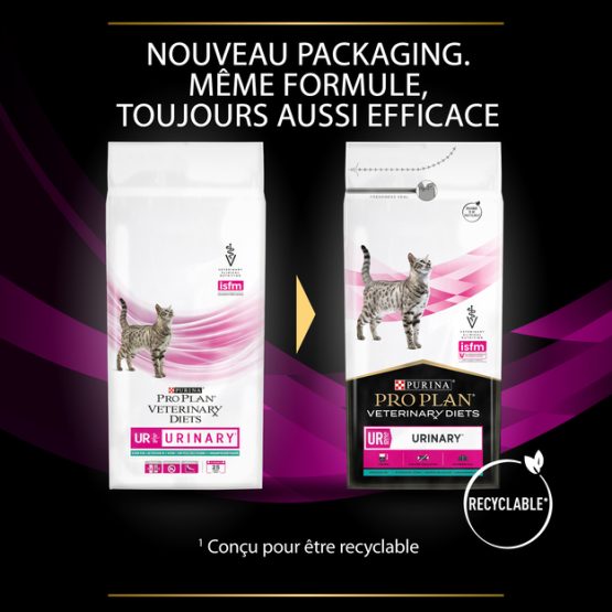 Purina Pro Plan VD Feline UR Poisson est un aliment complet pour les chats qui souffrent de troubles urinaires, permet une dissolution rapide des calculs de struvite et une gestion des récidives d’urolithiase, favorise l’absorption d’eau.