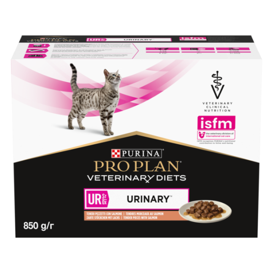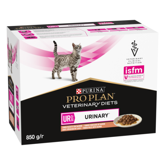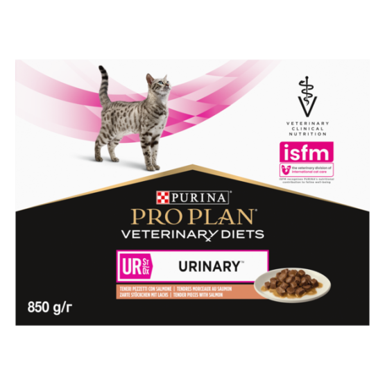 Feline UR Urinary Saumon est un aliment diététique complet pour chat adulte, spécialement formulé pour la dissolution et la réduction des récidives des calculs de struvite.