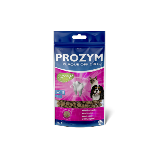 • PROZYM Plaque Off Croq’ s’administre comme une friandise peu calorique, ce qui en fait une récompense saine pour votre petit chien ou chat.