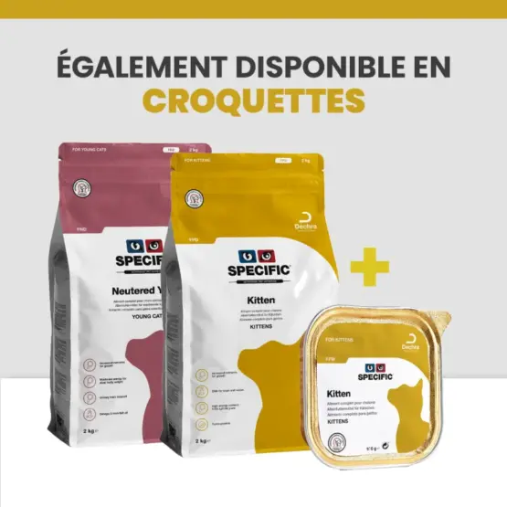 - Peut être combiné avec les croquettes SPECIFIC FPD Kitten pour une alimentation mixte.