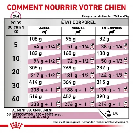 Royal Canin Dog Renal est un aliment diététique complet formulé pour préserver la fonction rénale en cas d’insuffisance rénale chronique ou de syndrome d’insuffisance rénale temporaire.