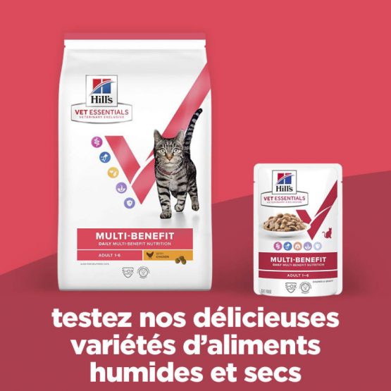Nutrition quotidienne de qualité vétérinaire sous forme de sachets repas pour chat.
